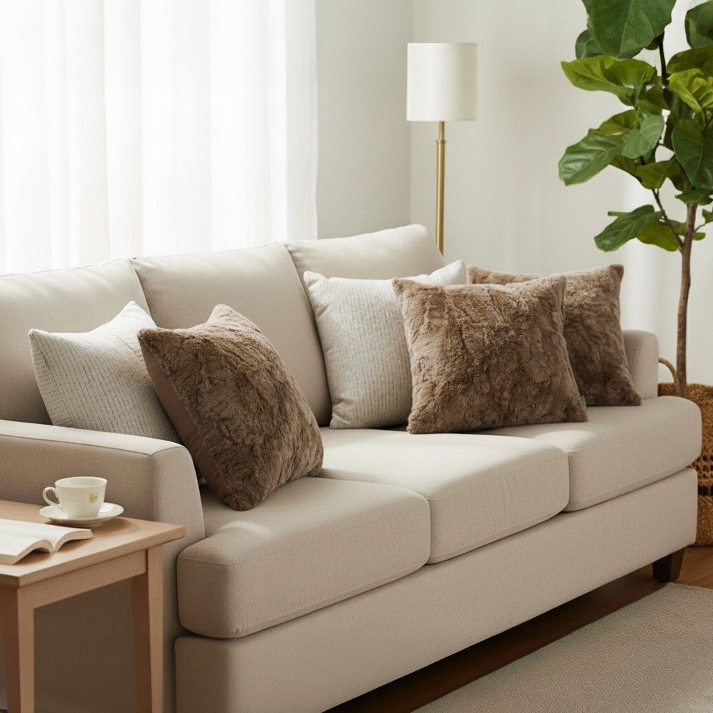 Textured & Layered Designs: Faux fur and linen textures create depth, tactile comfort, and a visually appealing layered look.