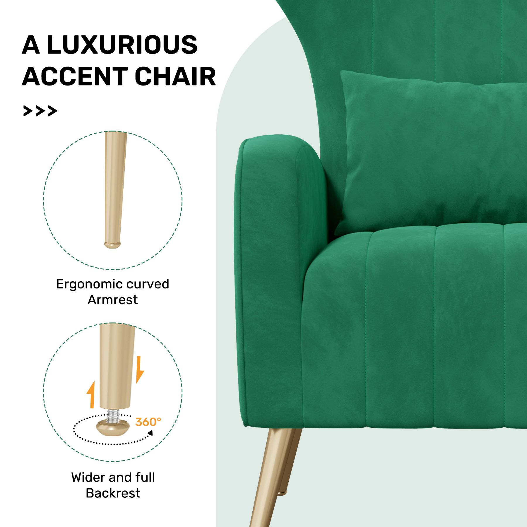 Creative Design: This modern arm chair has a distinctive wingback like A Queen Chair design. Furthermore, the built-in S-shaped springs assure long-term use.